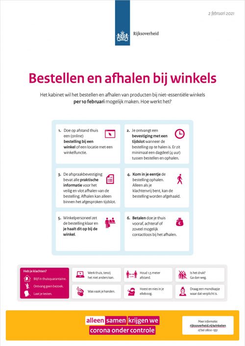 Er zijn door de overheid wel een aantal voorwaarden aan het bestellen en ophalen van producten bij een winkel gesteld: